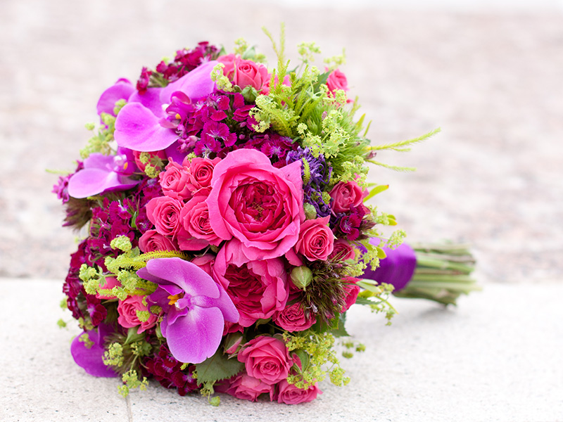 You will arrange assorted roses and hydrangeas in a pink vase.