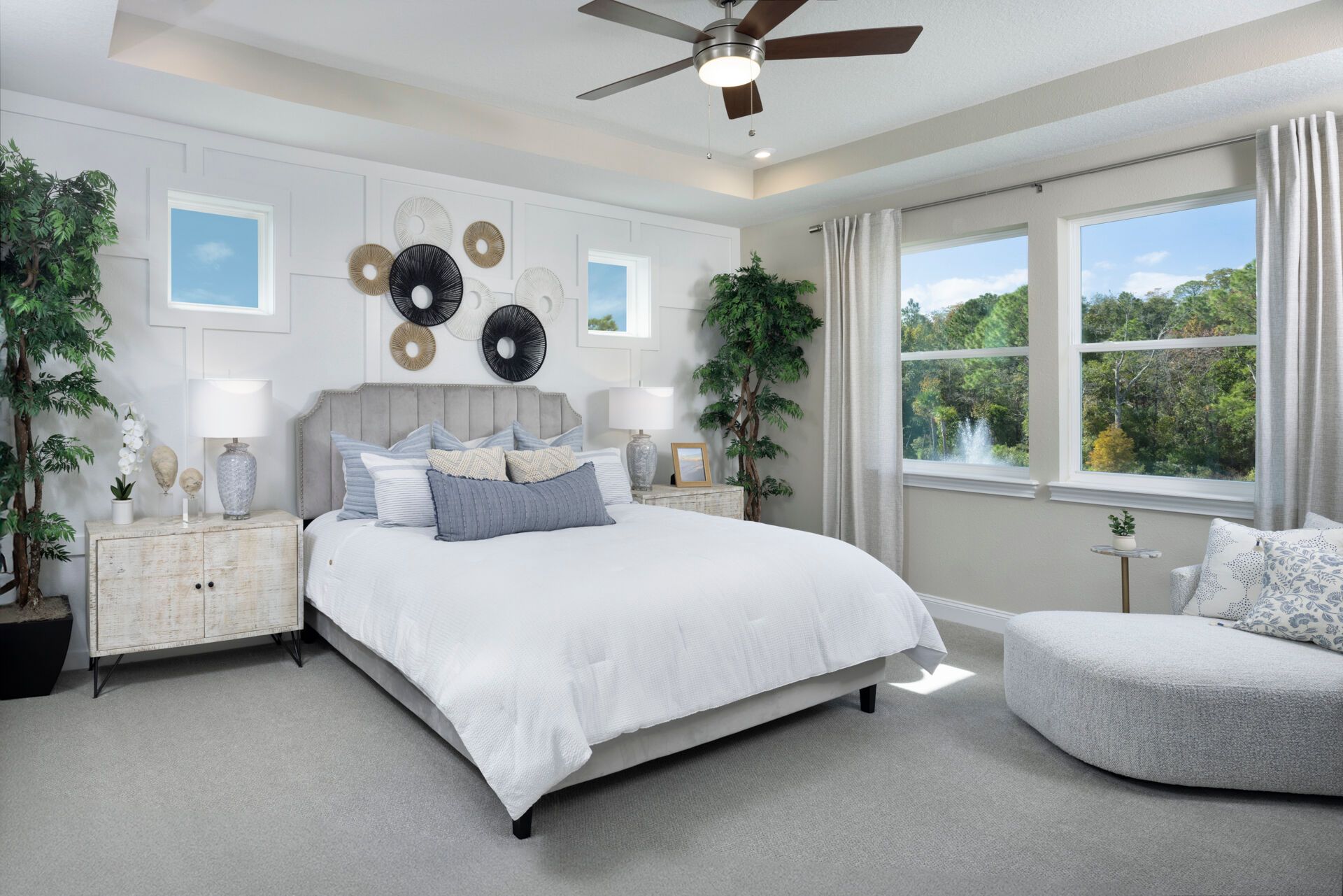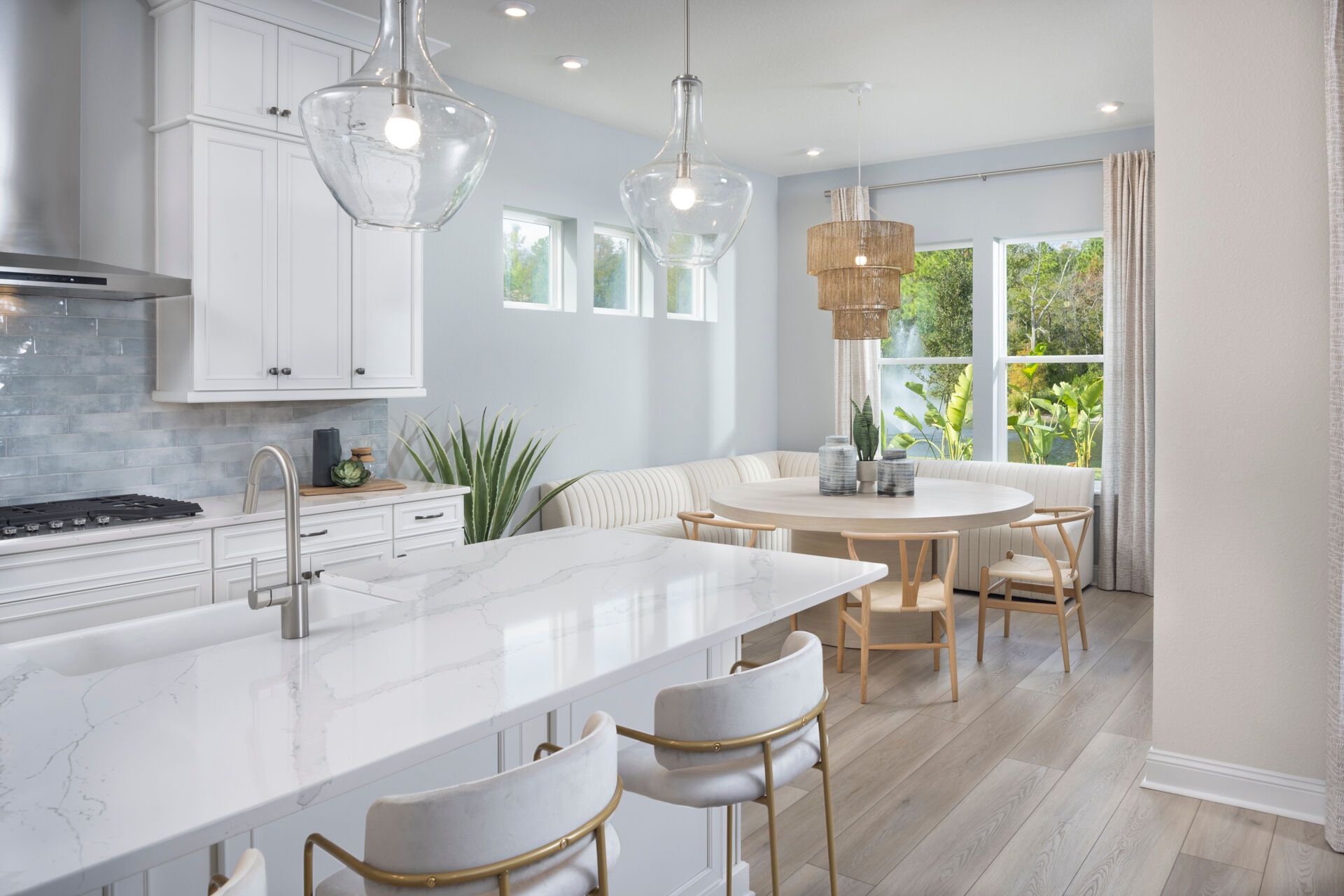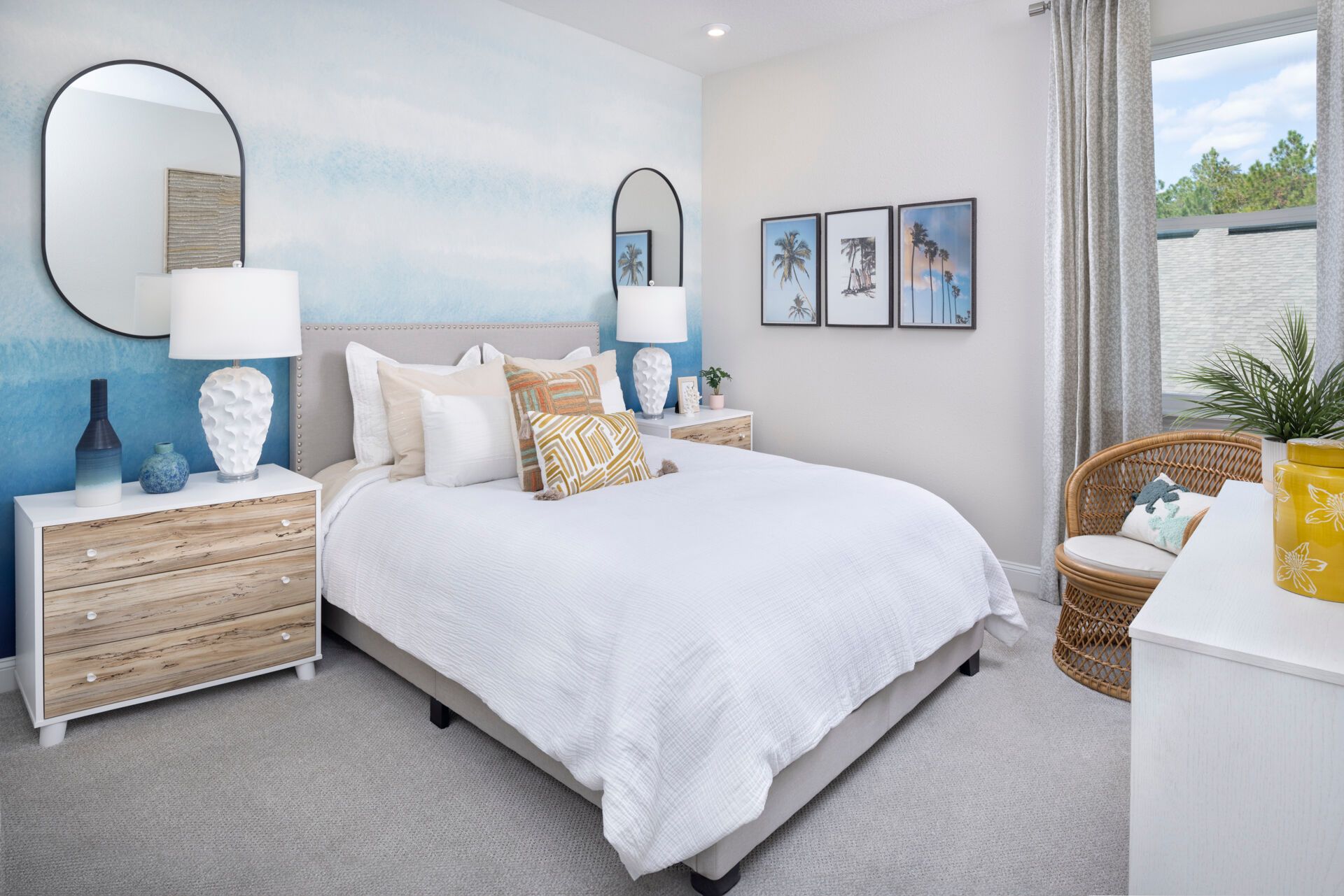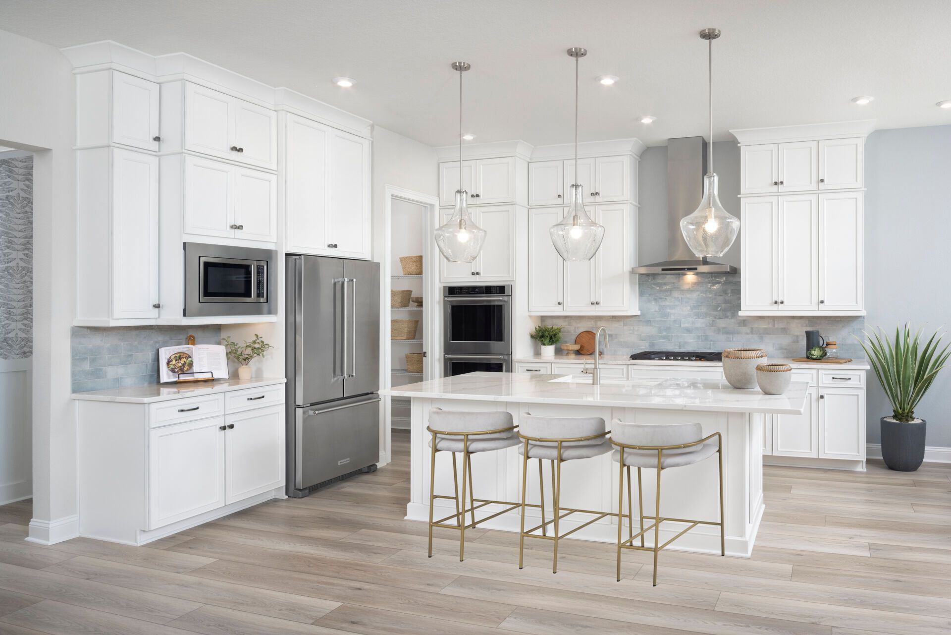 The Rowan welcomes you with a bright and inviting foyer that opens into a spacious Great Room, beautifully illuminated by natural light streaming through the covered lanai and enhanced by a stunning 12 multi-sliding glass door that seamlessly connects indoor and outdoor living. The island kitchen overlooks both the Great Room and dining area, creating a natural gathering space perfect for everyday living and entertaining. A study in lieu of the flex room provides a dedicated area for working from home, reading, or pursuing hobbies. Thoughtful details like a convenient stop-and-drop at the owners entry and a 2-car tandem garage add functionality to the homes design. Upstairs, an expansive loft offers a versatile space and thoughtfully separates three secondary bedrooms from the private Owner's Suite, which features a spacious walk-in closet and a well-appointed bath with dual vanities. Completing the homes charming curb appeal is the beautiful Coastal elevation, giving the Rowan a light, breezy style that perfectly complements Florida living.