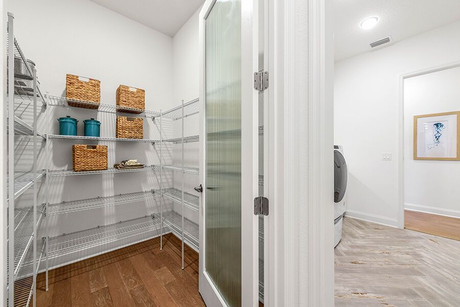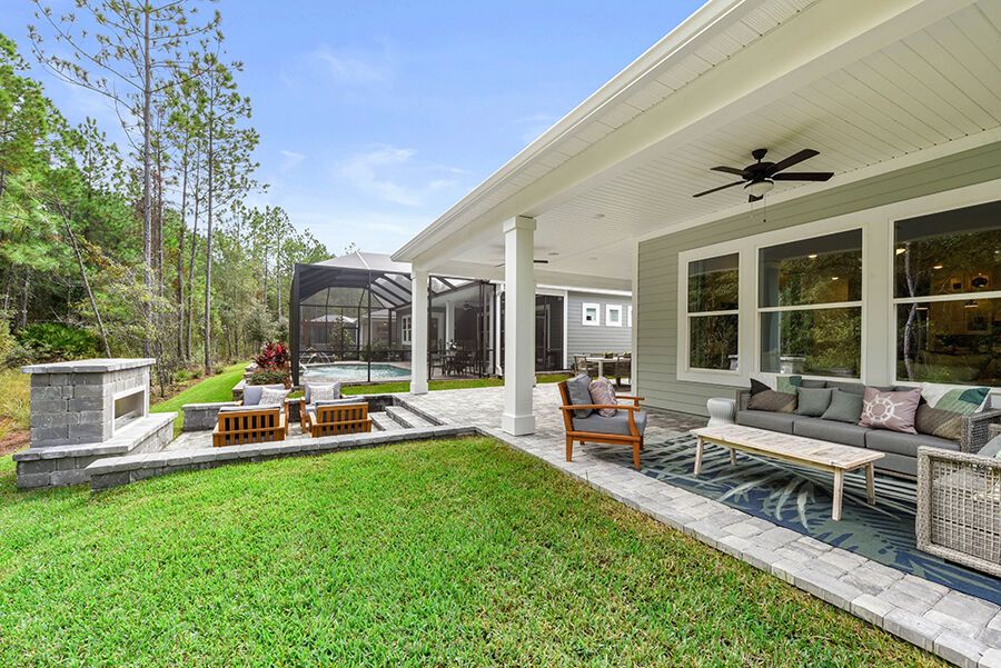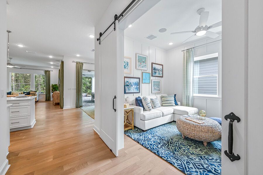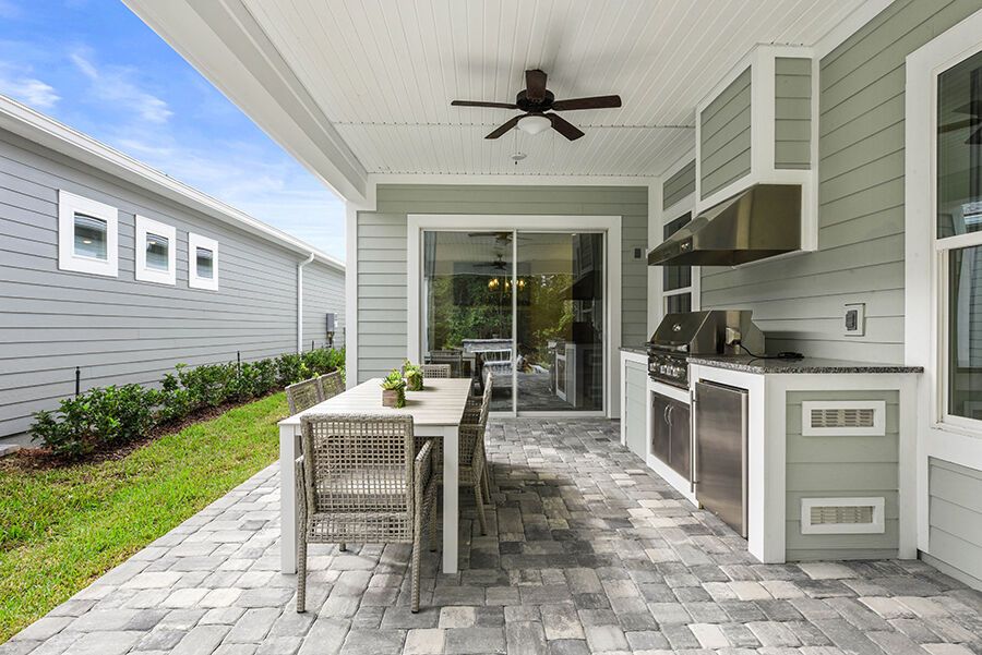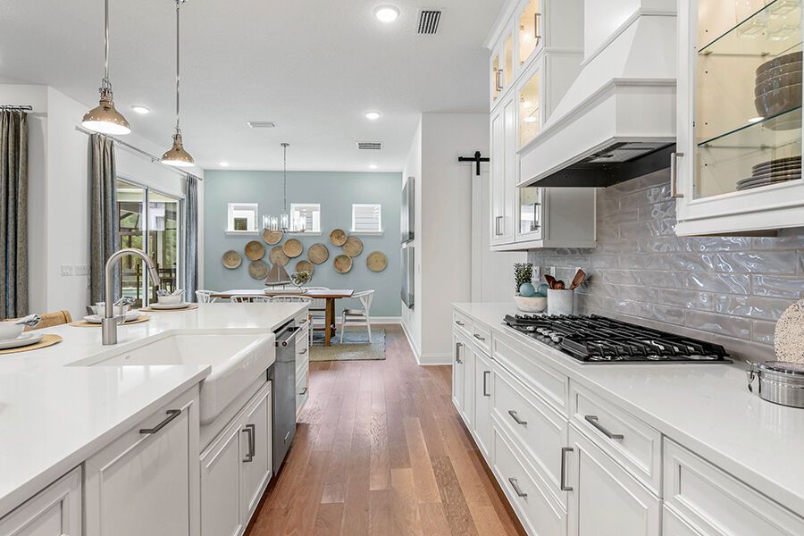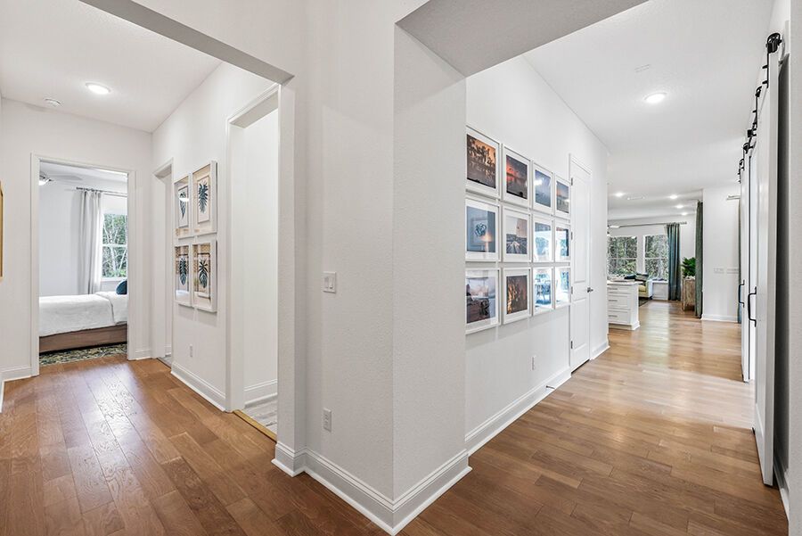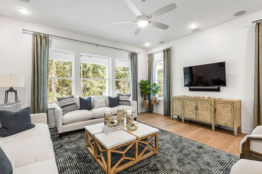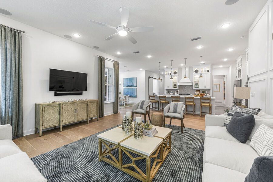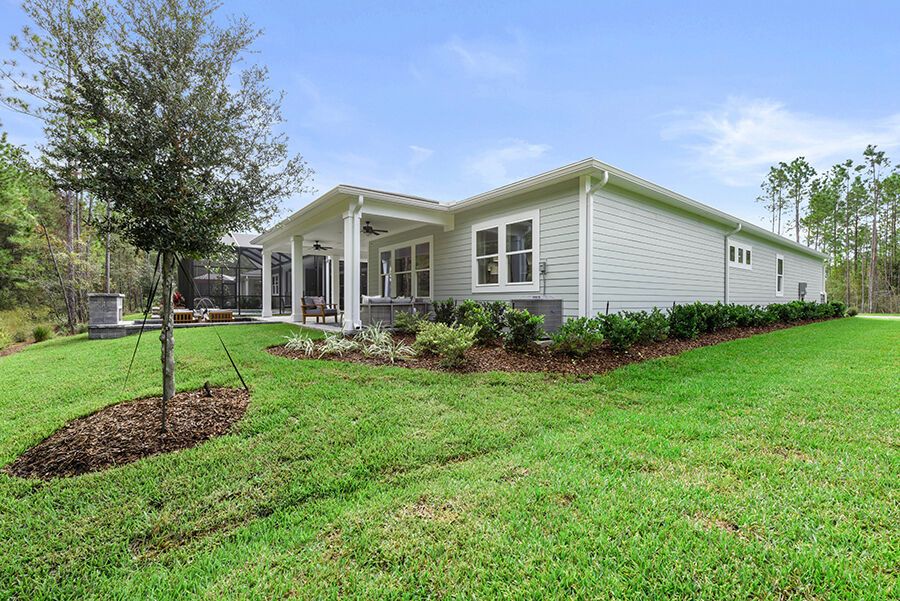 The Harbor is a welcoming retreat designed for comfort and flexibility. This three-bedroom, three-bath home features a Study in lieu of the Flex Room, Bath 2 upgraded with a sleek shower in place of a tub, and a luxurious Spa Shower in the owners suite. The open-concept kitchen includes a walk-in pantry and overlooks the spacious family and dining areas, enhanced by a 12' sliding glass door that opens to a covered lanai, perfect for indoor-outdoor living. Completing the home is a spacious two-car garage with additional room for a golf cart, making The Harbor a truly versatile and comfortable place to call home.