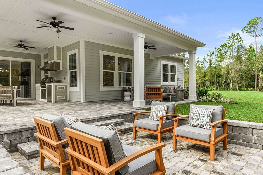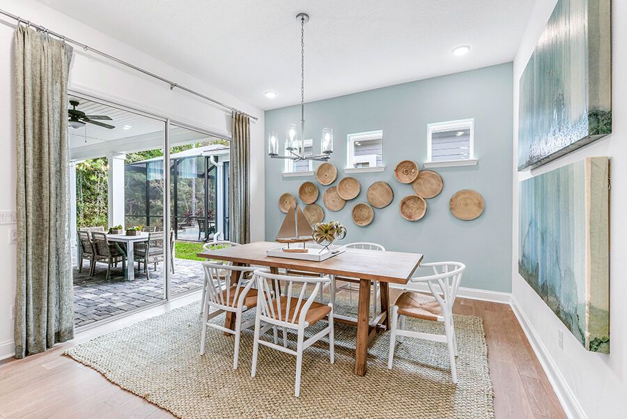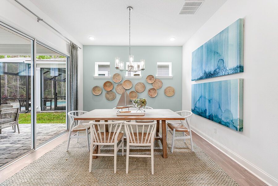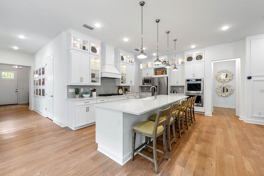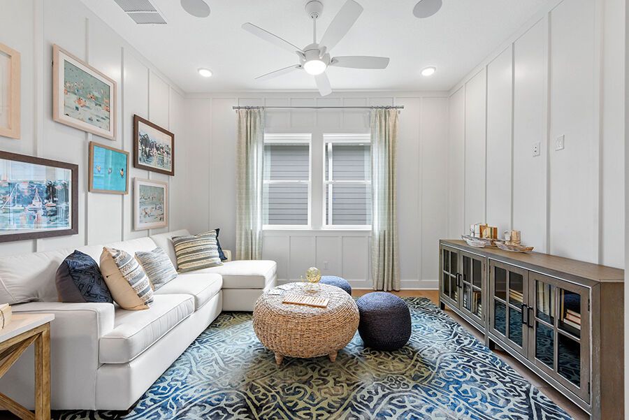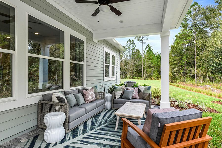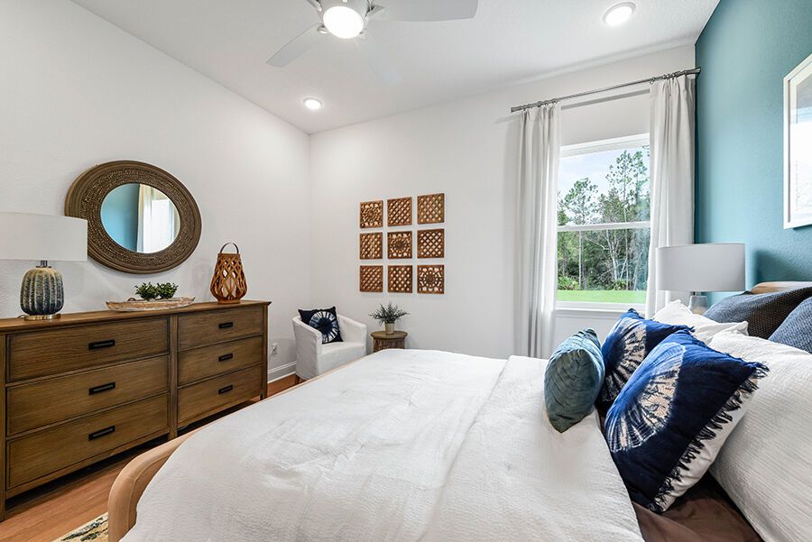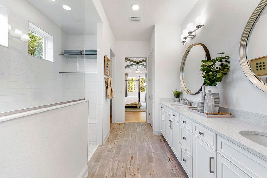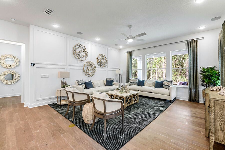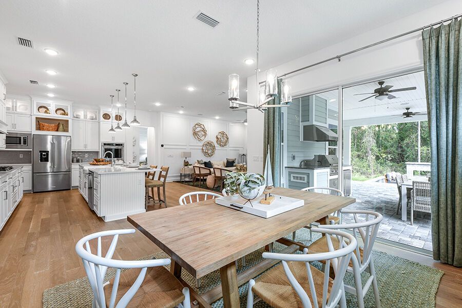 The Harbor is a welcoming retreat designed for comfort and flexibility. This three-bedroom, three-bath home features a Study in lieu of the Flex Room, Bath 2 upgraded with a sleek shower in place of a tub, and a luxurious Spa Shower in the owners suite. The open-concept kitchen includes a walk-in pantry and overlooks the spacious family and dining areas, enhanced by a 12' sliding glass door that opens to a covered lanai, perfect for indoor-outdoor living. Completing the home is a spacious two-car garage with additional room for a golf cart, making The Harbor a truly versatile and comfortable place to call home.