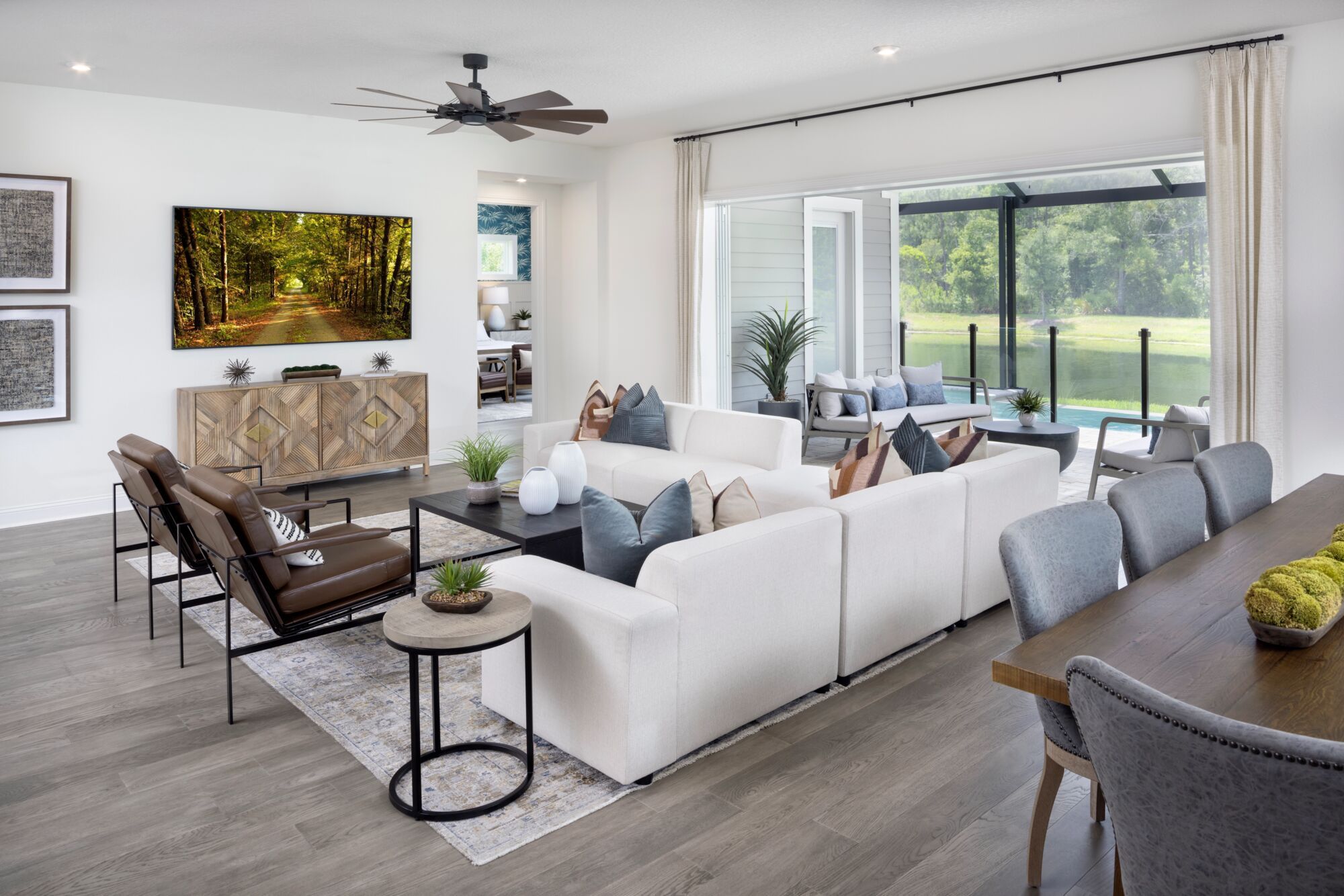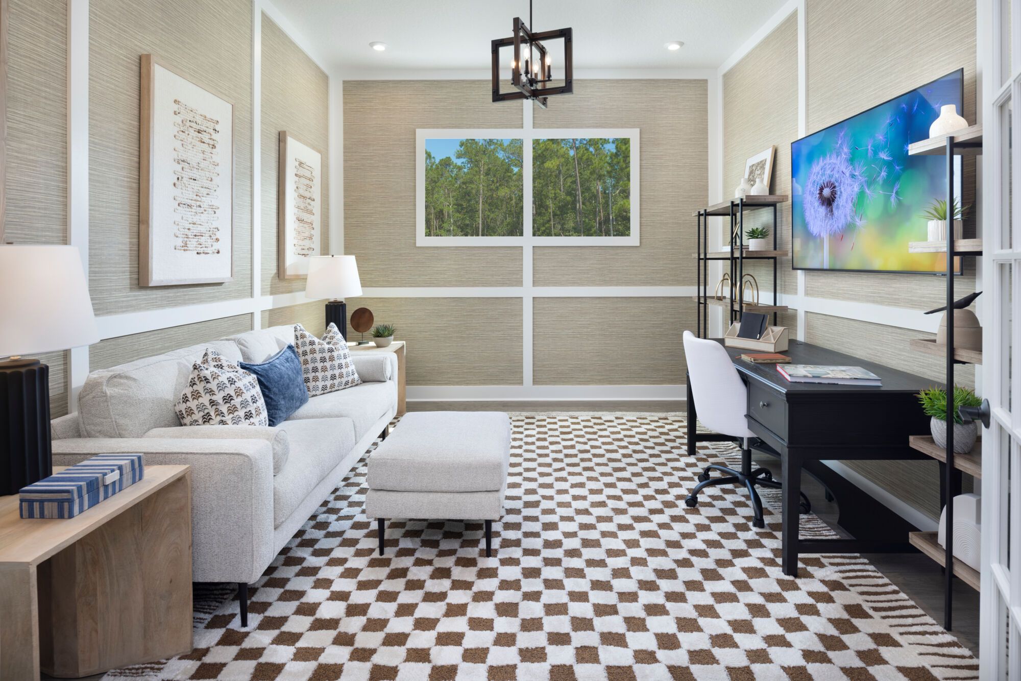 The Topaz blends timeless charm with modern comfort, showcased by its stunning Low Country elevation and thoughtfully designed 4-bedroom, 3.5-bath layout with a spacious 3-car garage. From the moment you step inside, the welcoming foyer opens to an airy Great Room that flows effortlessly into the dining area and extended covered lanai, creating a light-filled setting perfect for entertaining or everyday living. The chef-inspired kitchen is the heart of the home, featuring a large island overlooking the main living space, a convenient morning kitchen, and a generous walk-in pantry. Tucked privately at the rear, the luxurious owners suite offers a peaceful retreat, while two secondary bedrooms are situated along a private hallway. A fourth bedroom with its own garage entry provides added flexibility for guests or multigenerational living. A Study in Lieu of Flex Room near the front of the home creates the ideal private office or creative space, and Bath 2 Shower in Lieu of Tub adds a sleek, spa-like touch to the secondary bath. Designed for both connection and comfort, the Topaz truly offers the best of Florida living.