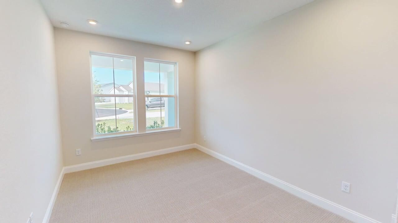 The Pier offers a refined two-bedroom, two-bath layout that blends open-concept living with high-function design. Enter through an L-shaped porch into a grand foyer that leads into a light-filled family room, where a 12' sliding-glass door enhances the airy feel and opens to an extended covered lanai for expanded outdoor living. The kitchen, with its island and breakfast bar, flows into the dining area, which includes a wet/dry bar ideal for entertaining. A private hallway leads to the spacious Owners Suite, complete with a large walk-in closet and a luxurious bath featuring a spa shower. Just off the foyer, a dedicated study replaces the flex room, offering a quiet workspace that adds versatility and comfort to this thoughtfully designed home.