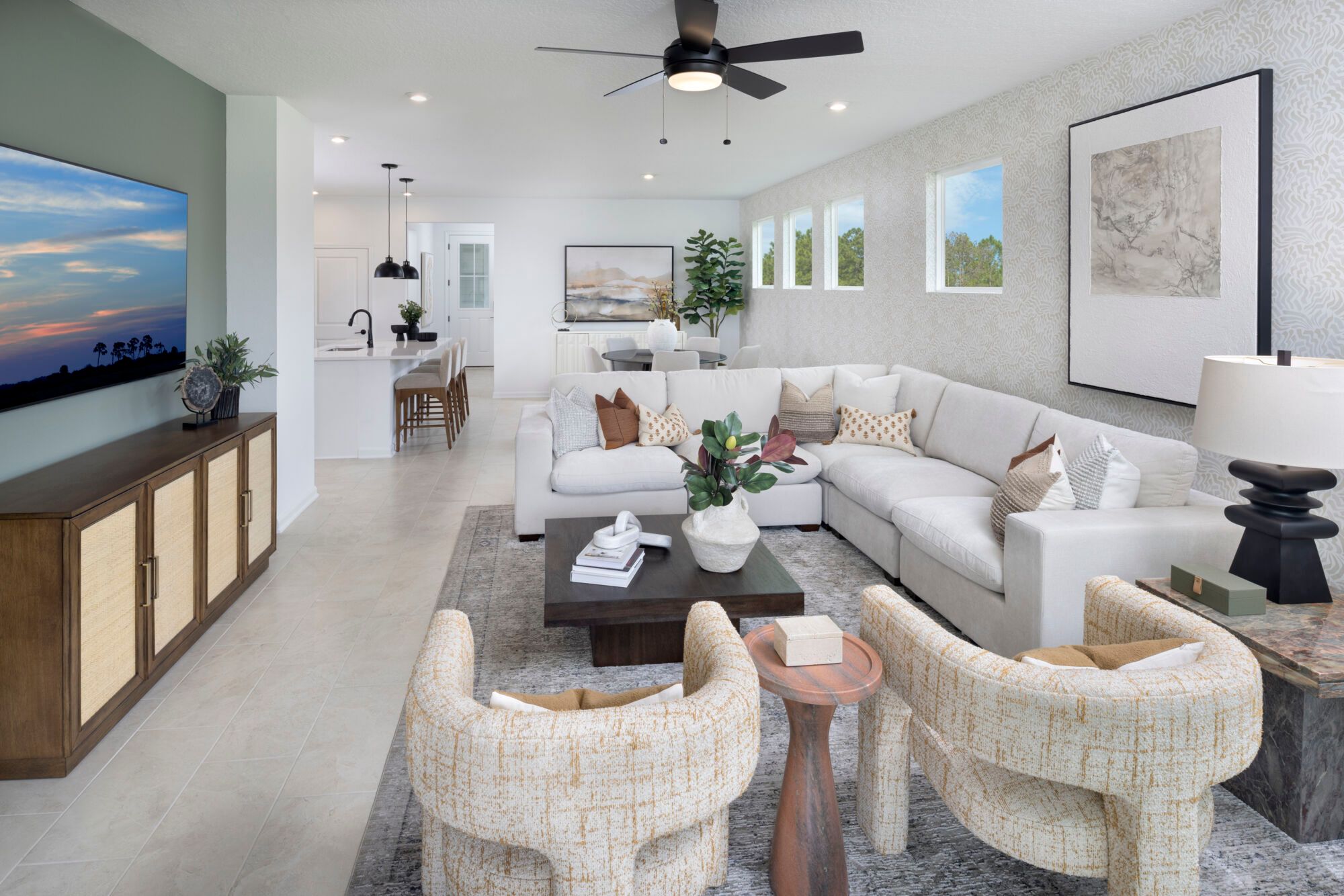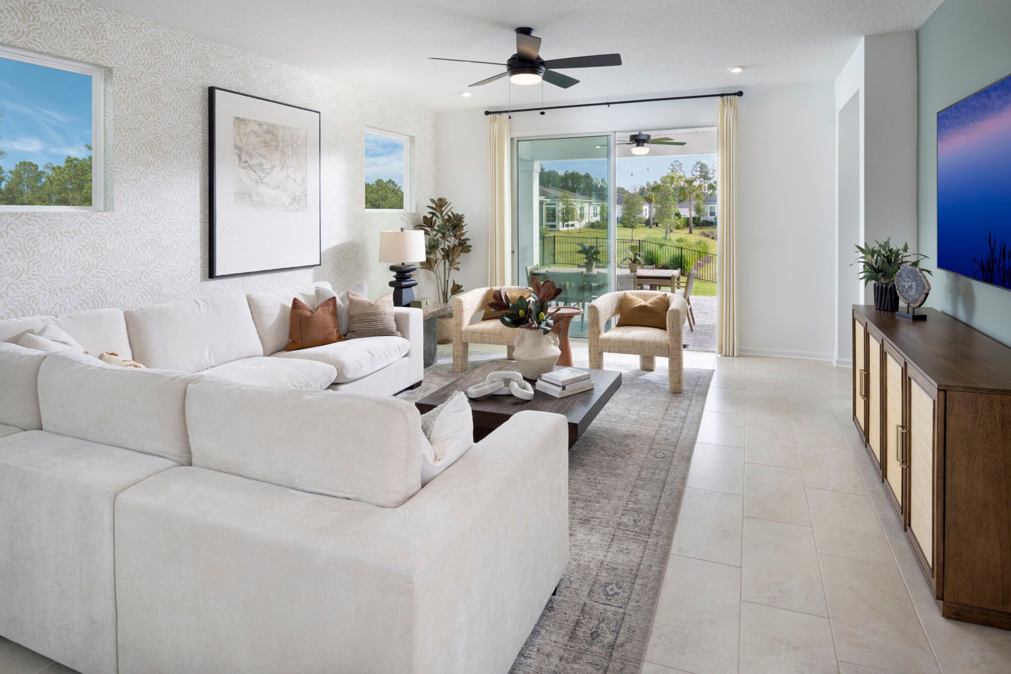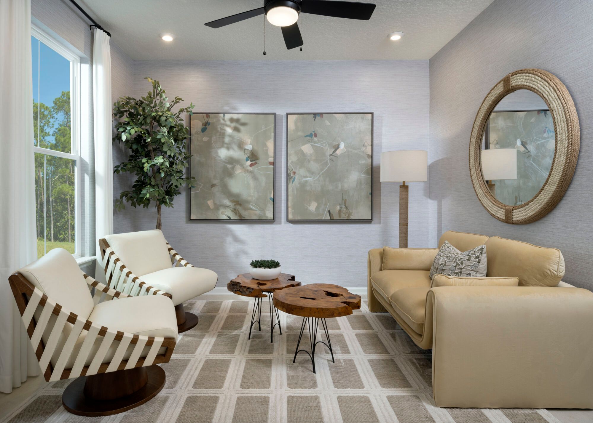 The Cabana showcases timeless Low Country elevation charm paired with a thoughtfully designed layout for todays lifestyle. Just off the foyer, a private study in lieu of the flex room offers a quiet, intentional space perfect for working from home or focused hobbies, with a secondary bedroom conveniently located across the hall. The open-concept living area brings the kitchen, dining space, and Great Room together, with a central island overlooking the light-filled interior. Sliding glass doors extend the living space to a covered lanai, creating an inviting setting for outdoor relaxation and entertaining. Privately positioned at the rear of the home, the primary bedroom provides a peaceful retreat, completing a floorplan that balances comfort, function, and classic Low Country appeal.